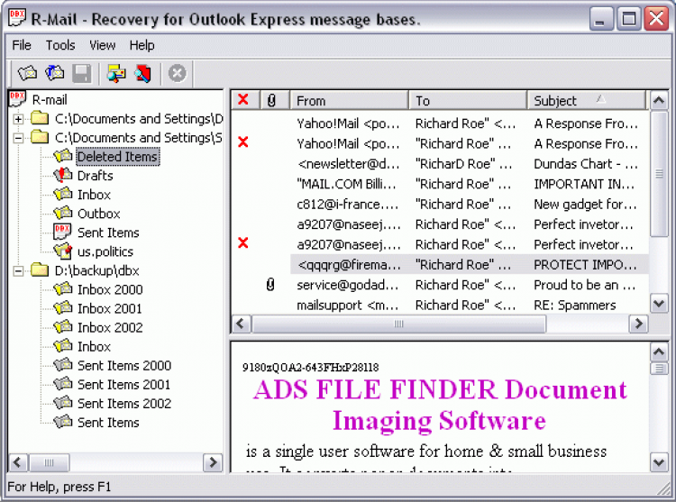 R-Mail for Outlook Express Это семейство утилит реконструкции поврежденных файлов и сообщений Microsoft Outlook.