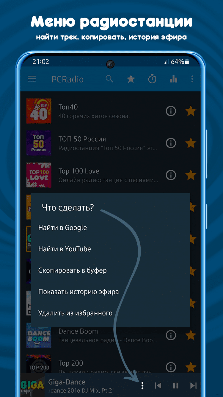- Интуитивно понятная навигация по радиостанциям.