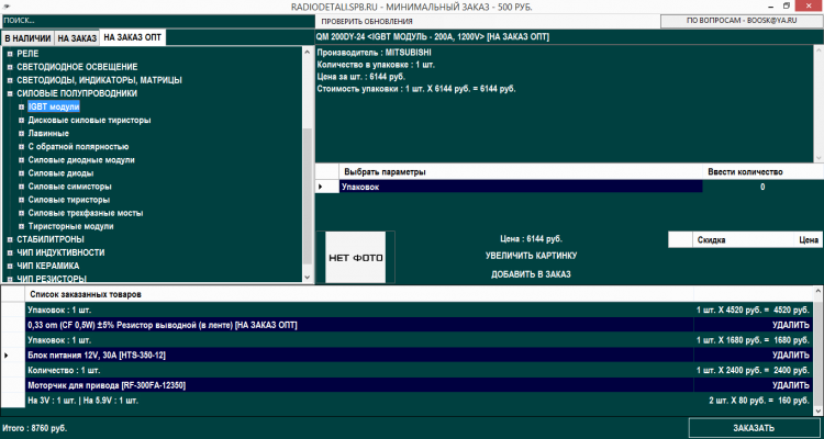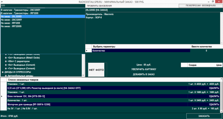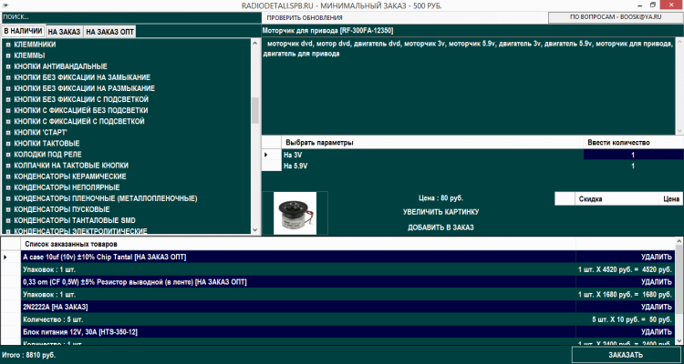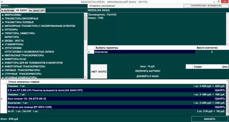 Радиодетали СПб - это электронный каталог электронных компонентов, транзисторы, микросхемы, конденсаторы, варисторы, разъемы, переключатели, кнопки и многое другое. Широкий спектр продукции мировых и отечественных производителей. Быстрый и простой способ заказа. Удобные варианты оплаты и доставки. Доставка по регионам транспортными компаниями. Реальные сроки поставки товара под заказ.