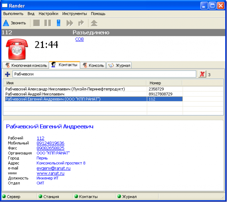 - Rander позволяет вам дозваниваться до внутреннего или внешнего абонета, просто выбрав его имя в телефонной книге. Вам больше не требуется набирать телефонные номера вручную - теперь за вас это может делать компьютер