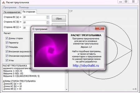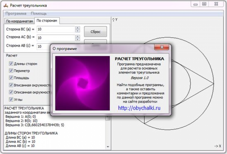 Расчет треугольника - это программа, которая может использоваться для расчета основных параметров треугольника по трем сторонам или углам. Строит схематичное отображение высот, медиан и др.