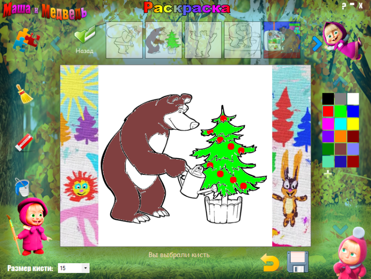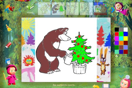 Раскраска Маша и Медведь - это программа раскраска, в которой необходимо раскрашивать персонажей из популярного мультфильма "Маша и Медведь".