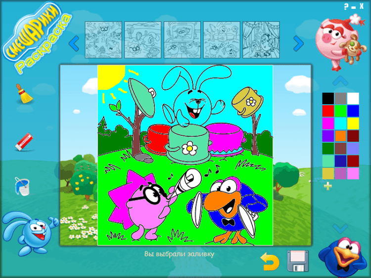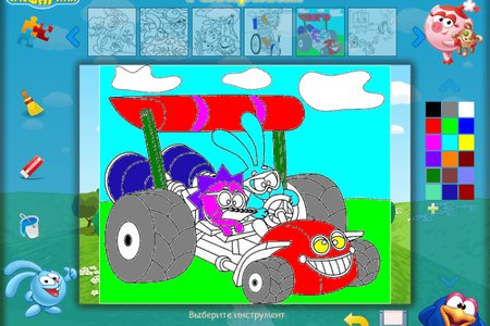Раскраска Смешарики - это программа раскраска, в которой необходимо раскрашивать персонажей из популярного мультфильма "Смешарики". Раскраска Смешарики без сомненья понравится Вашему ребенку, и он проведет время с пользой, раскрашивая любимых героев мультфильма.