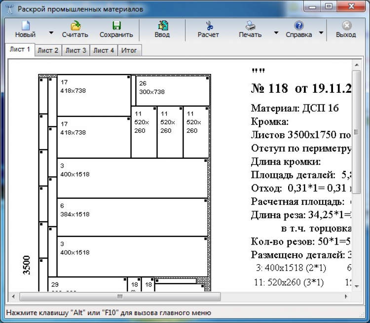Раскрой - это программа, которая позволяет производить построение карты оптимизированного раскроя промышленных материалов, например, ДСП (при изготовлении мебели), стекла или любых других листовых или рулонных материалов.