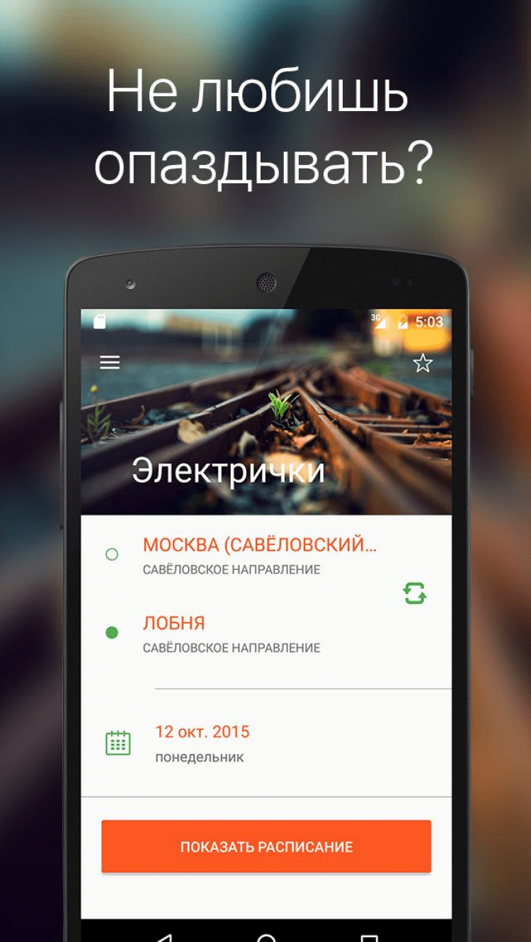 Расписание электричек Это бесплатное приложение поможет вам узнать, когда отправляется и приходит нужная вам электричка. Программа содержит расписание для большинства крупных городов России - просто начните набирать имя станции. Расписание обновляется через интернет. Любите поспать в дороге? Нажмите (на несколько секунд) на нужную Вам электричку и выберите "Разбудить". За 5 минут до прибытия на станцию приложение услужливо Вас разбудит.