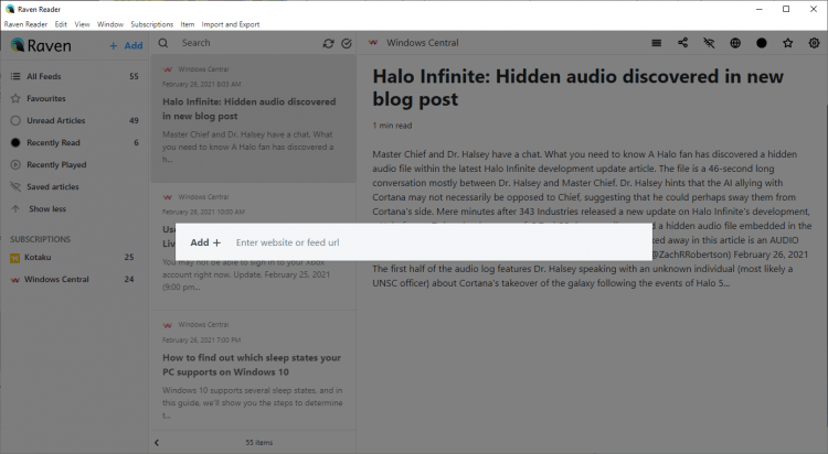 Raven - это программа с открытым исходным кодом для чтения новостных лент. Имеет простой интерфейс и гибкие настройки. Не требует никакой регистрации, не собирает данные о пользователе. Позволяет с комфортом читать новости с любимых сайтов и блогов.