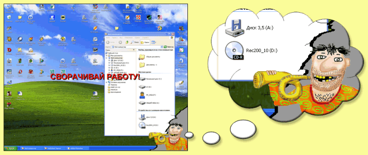 Разбойник - это чудаковатого вида дядечка выскакивает в заданное пользователем время, отламывая кусочек экрана, дудя в трубу и показывая надпись сворачивай работу. Сделал для сотрудников своей компании, чтобы не засиживались после работы за компьютерами. Дядя имел успех, особенно у женщин. Теперь он доступен всем желающим.