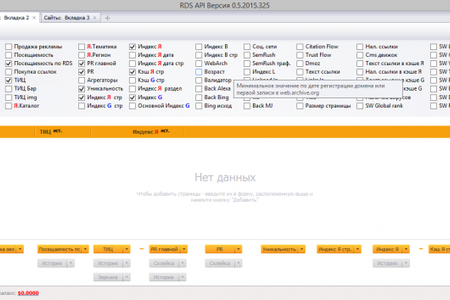 RDS API - это программа для Windows, с помощью которой можно выполнять SEO-анализ веб-сайтов и\или веб-страниц. Она предназначена в первую очередь для веб-мастеров и SEO-оптимизаторов. Она способна проанализировать любое количество сайтов по разным параметрам. Программа RDS API использует в качестве источника сайт recipdonor.com, на котором необходимо зарегистрироваться для использования этой программы. Процесс регистрации занимает всего несколько секунд. В интерфейс программы очень легко разобраться. Анализ сайтов и страниц выполняется на разных вкладках. При этом вы сможете открыть несколько вкладок для анализа разных групп сайтов/страниц. Параметры, по которым RDS API будет анализировать указанные сайты, вы можете выбрать самостоятельно. В программе также есть фильтры, с помощью которых вы сможете быстрее получить нужную вам информацию. Результаты анализа программа показывает в виде таблицы. Данные из этой таблицы можно экспортировать в Excel. Вы можете скачать RDS API с FreeSoft.ru бесплатно, безопасно и быстро! Для запуска программы необходимо скачать и установить: - Windows Installer 4.5; - Microsoft .NET Framework 4.