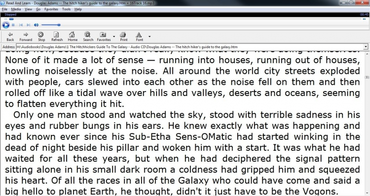 Read And Learn - это компьютерная программа, которая может помочь вам в изучении разговорного иностранного языка. Эта программа объединяет Internet Explorer и Windows Media Player, что дает возможность прослушивать аудиокнигу и одновременно читать ее.