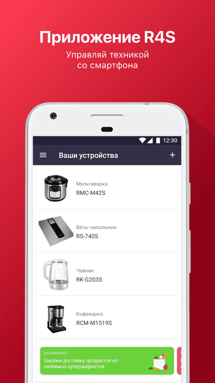 Это приложение предназначено для обладателей умной техники от Redmond. С его помощью, вы можете быстро подключить совместимые устройства к своей учетной записи и проверять их состояние, а также полноценно управлять ими в любой момент. Среди поддерживаемых устройств, множество моделей чайников, мультиварок, кофеварок, мультикухонь весов, обогревателей, утюгов, а также розеток и прочих гаджетов. Все подключенные устройства видны на главном \кране приложения, просто нажмите на нужное, чтобы начать отдавать команды с экрана смартфона.