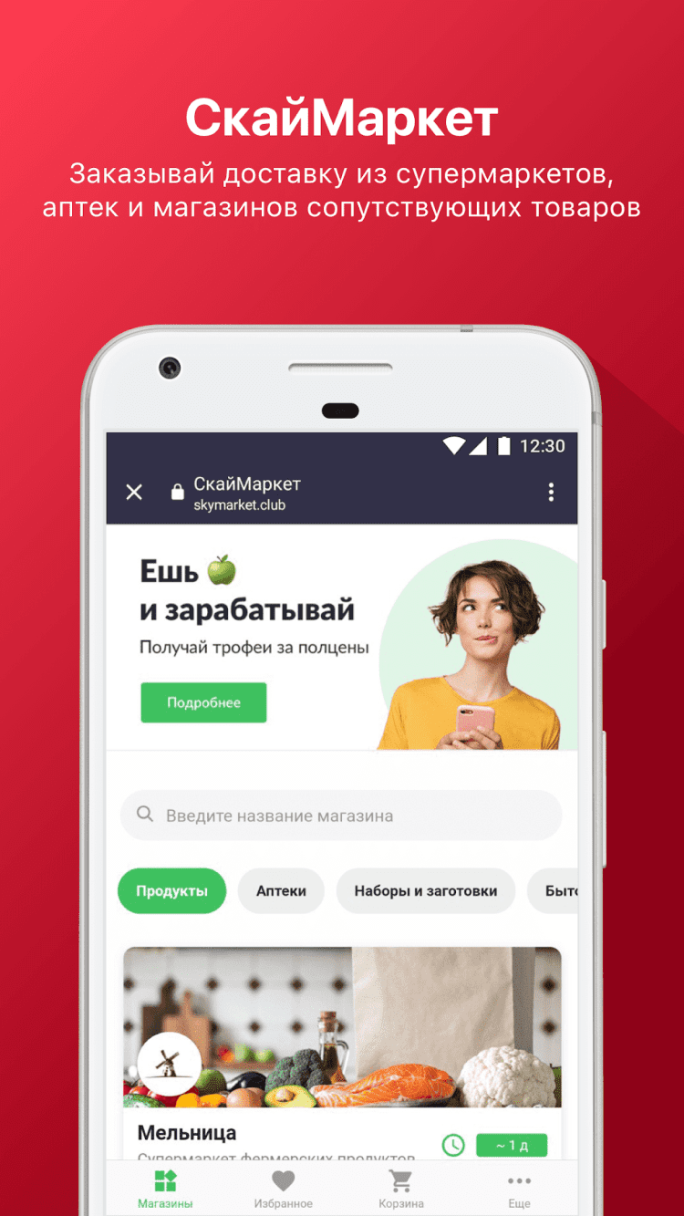 - доступ к сервису СкайМаркет для заказа продуктов и сопутствующих товаров;