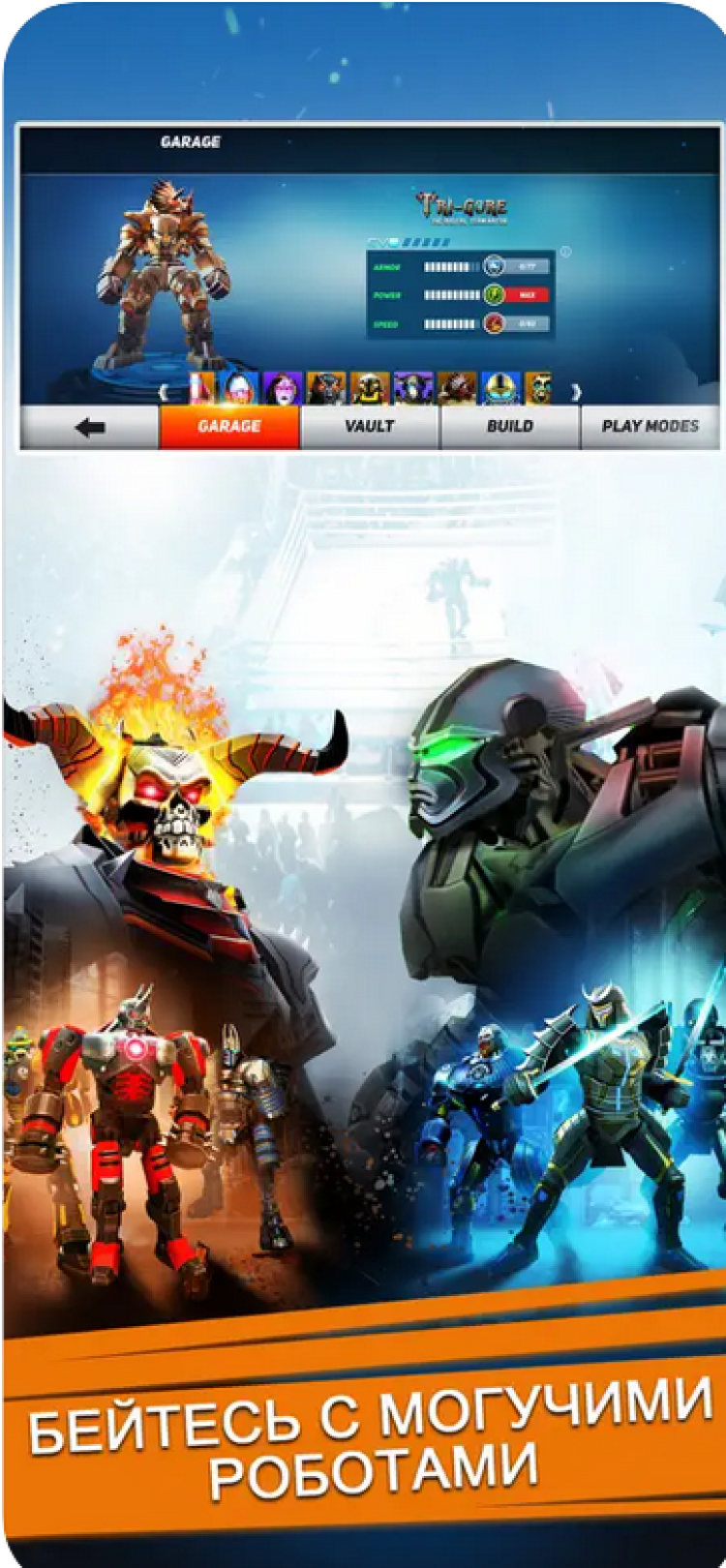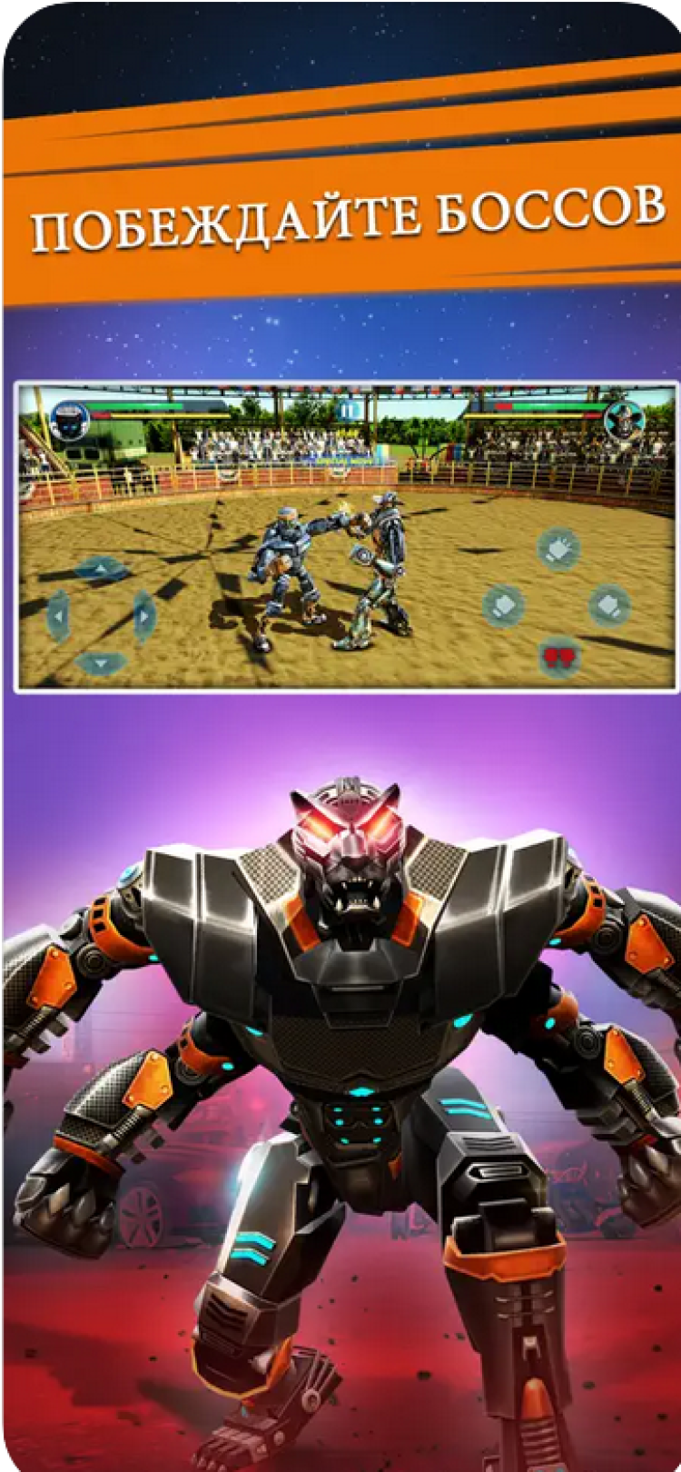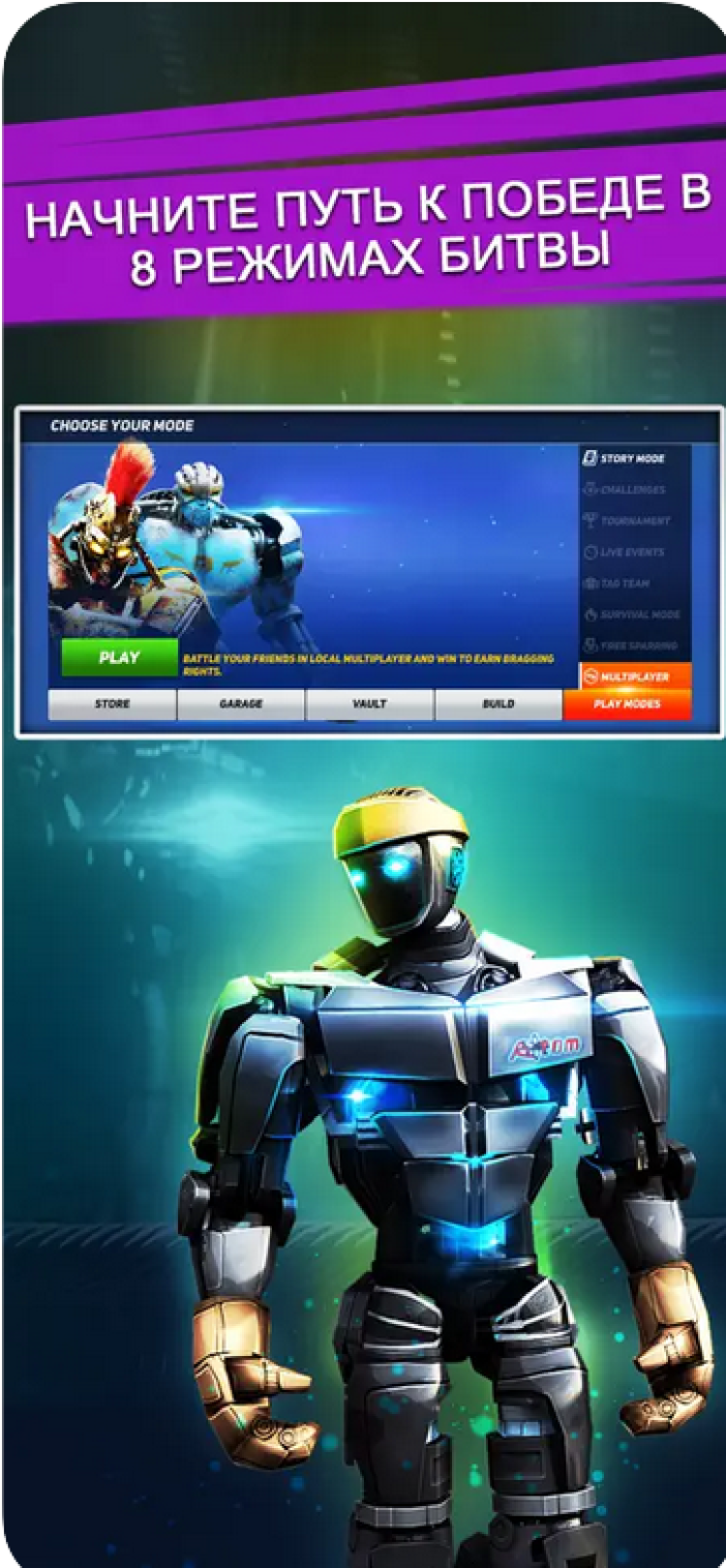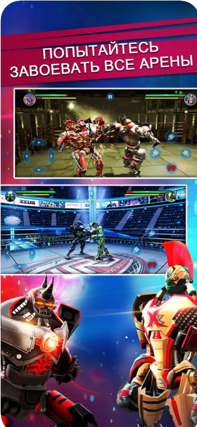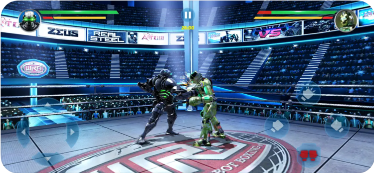 Real Steel — это увлекательный спортивный симулятор, созданный по мотивам фильма "Живая Сталь". В этой игре, вам предстоит управлять различными роботами-боксерами, либо создавать собственных персонажей и сражаться с противниками в нескольких боевых режимах.