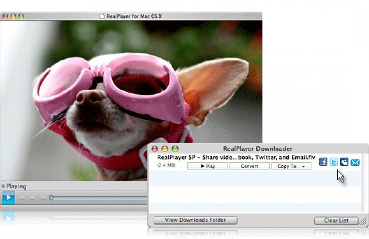 RealPlayer SP Новый RealPlayer SP для Mac позволяет загружать ваши любимые видео с любых веб сайтов и конвертировать их в форматы устройств IPod, iPhone, iPad, BlackBerry и других, быстро и легко.