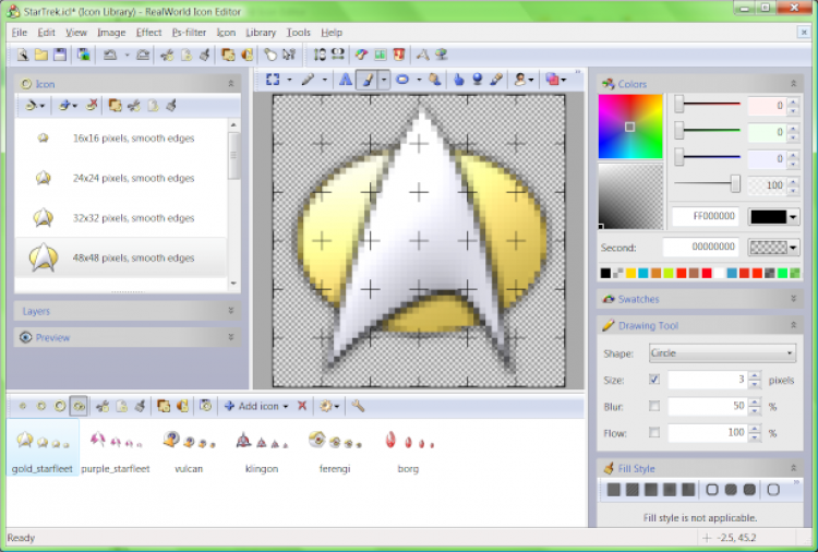 RealWorld Icon Editor - это мощный редактор иконок для Windows. В нем можно создавать новые и редактировать существующие иконки. Он обладает богатым выбором различных инструментов и может работать со слоями как Photoshop.