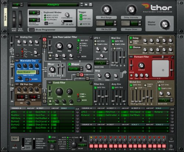 Звуки из эмулируемых устройств могут быть направлены на любой из двух микшеров или на сплиттер-смесители. Палитра эффектов включает в себя дисторшн, ревербератор, хорус, вокодер и различные мастеринговые эффекты.
