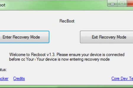 RecBoot предлагает максимально простой и безболезненный способ перехода и выхода в режим восстановления на iPhone или iPad. Утилита не нуждается в настройке. Запустив ее просто подключите устройство к компьютеру и нажмите "Enter Recovery Mode" перехода в режим восстановления, или "Exit Recovery Mode" для выхода из него.