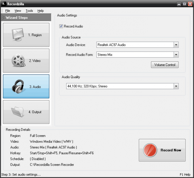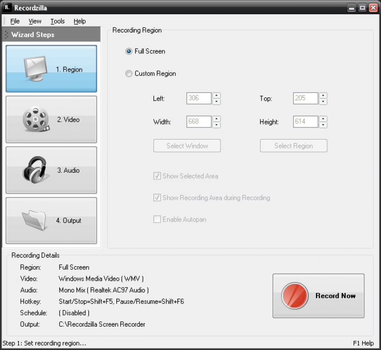 Recordzilla Screen Recorder - это программа для захвата видео с рабочего стола компьютера и записи его в формате VI, WMV, Flash SWF или Flash FLV. Записывать можно рабочий стол целиком, только его конкретную область, активное окно или область вокруг курсора. Помимо видео, записывается так же и звук, поддерживаются различные источники (внутренний и внешний микрофон, стерео микшер, микрофон гарнитуры и т.д.). В настройках программы можно установить разрешение видео, размер файла и частоту кадров.