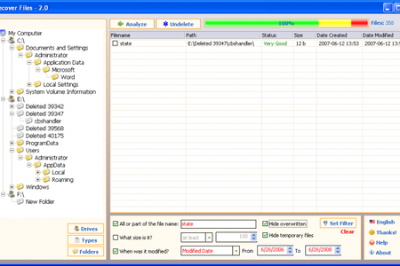 С помощью Recover Files можно легко и быстро восстановить любые файлы, даже если они были удалены из корзины, или удаленные с помощью комбинации "Shift+Delete". Программа сканирует носитель, находит удаленные файлы и выводит список их список. В списке отображаются название, тип, размер, статус и другая информация о файле. Recover Files поддерживает все типы файлов и позволяет восстанавливать их с жестких дисков, USB-носителей, крат памяти и других типов носителей. Она также поддерживает все файловые системы, включая FAT16, FAT32, NTFS и NTFS 5.