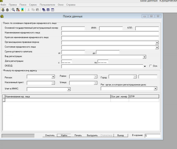 Программное обеспечение предоставляет возможность поиска по базе данных по различным критериям, печать выписок, выгрузки в MS Excel и т.д.