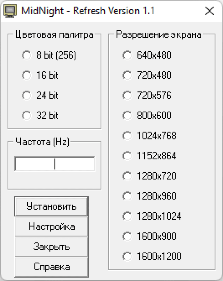 Refresh Утилита для изменения частоты (Hz) монитора в параметрах реестра Win98/Me. После изменения частоты (Hz), установите желаемое разрешение экрана в свойствах экрана. Перезагрузки не требует. Требует библиотеку msvbvm50.dll, в Windows 98 и выше она есть. На некоторых старых мониторах не поддерживается частота обновления 800Х600 60Hz, а выбрать более низкую (56Hz), нет возможности, в настройках нет такого пункта. Для этих целей я и написал эту маленькую утилиту. Проверена была в Windows 98, на других не проверял (в Win Me возможно тоже сработает).