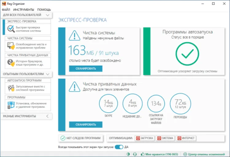 - Чистка и оптимизация реестра — находит и устраняет неиспользуемые и ошибочные записи в реестре, сжимает и дефрагментирует реестровые файлы.
