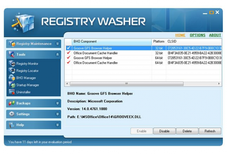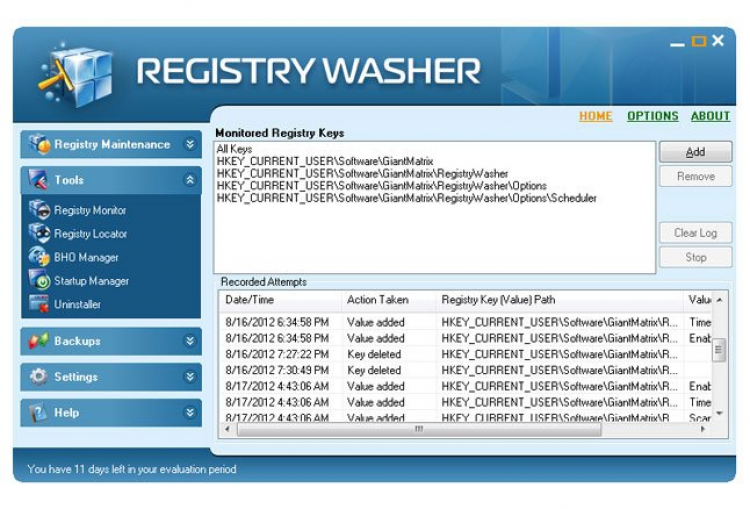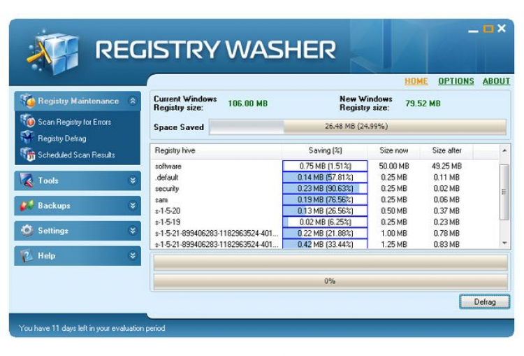 Registry Washer Программа для очистки реестра Windows. Она позволяет удалять старые и битые ключи реестра, увеличивая тем самым быстродействие компьютера. Так же с ее помощью можно проводить дефрагментацию реестра, выполнять резервное копирование на случай сбоев, управлять программами в списке автозапуска и удалять ПО с компьютера.