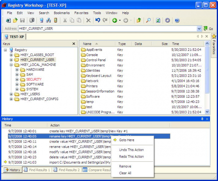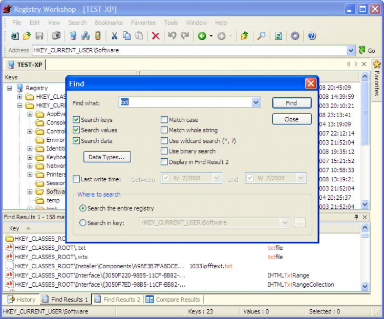 Мощная утилита для работы с реестром Windows. Registry Workshop позволяет проводить быстрый поиск ключей реестра, делать закладки, создавать резервные копии реестра и проводить дефрагментацию, сравнивать ветви реестра, открывать reg-файлы. А в случае неудачных изменений можно воспользоваться функцией отката последних действий.