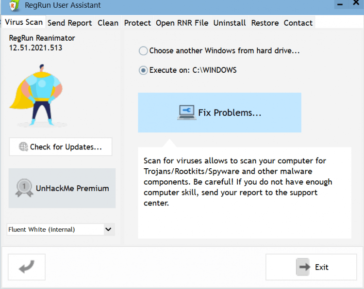 В RegRun Reanimator так же есть специальный режим "Clean after Virus" - он поможет устранить последствия вирусной активности. Он включает в себя менеджер процессов, и редактор реестра. Программа так же поможет исправить ошибку доступа у файлов, которые затронул вирус.