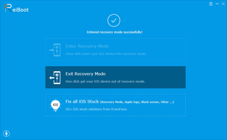 ReiBoot - крайне полезная программа, с помощью которой можно перевести iOS устройство из/в режим восстановления одним нажатием.