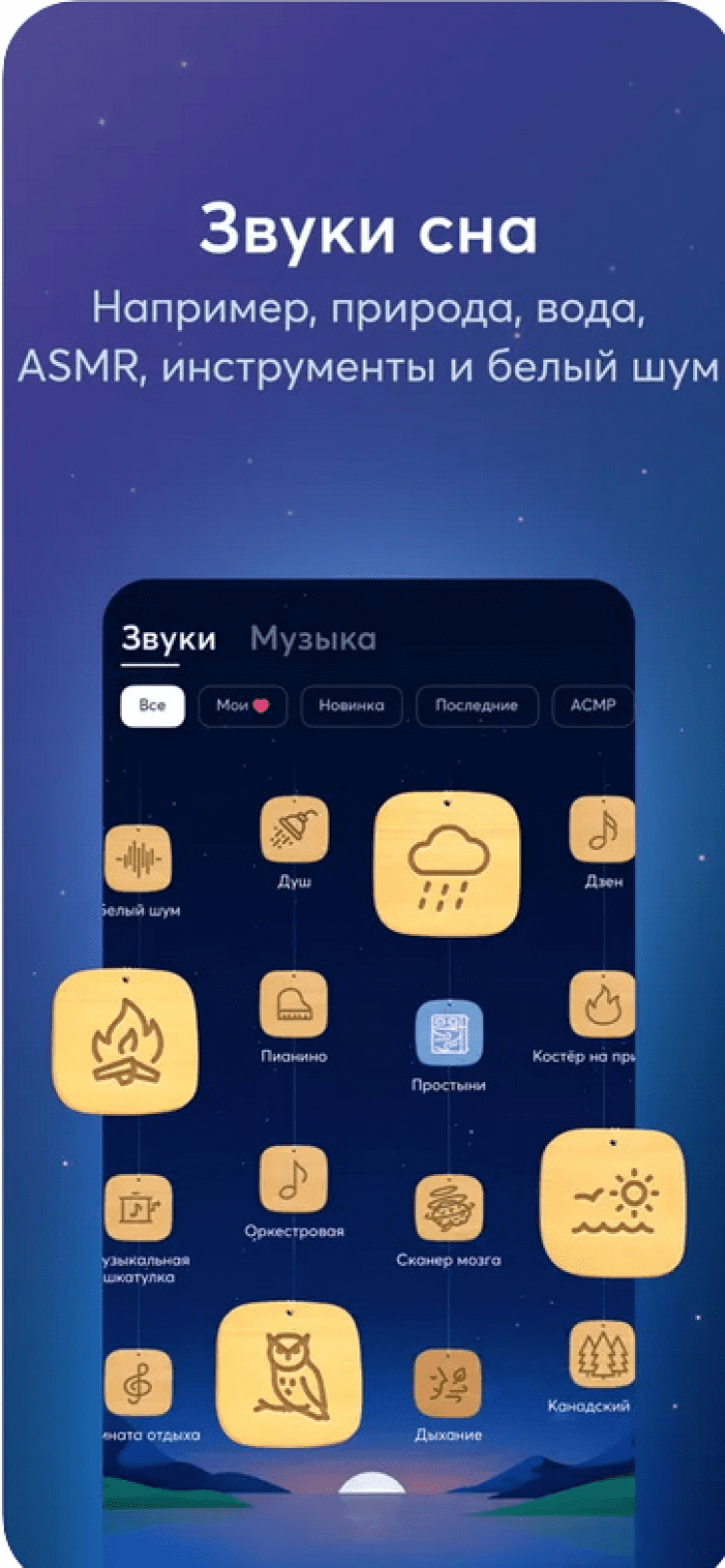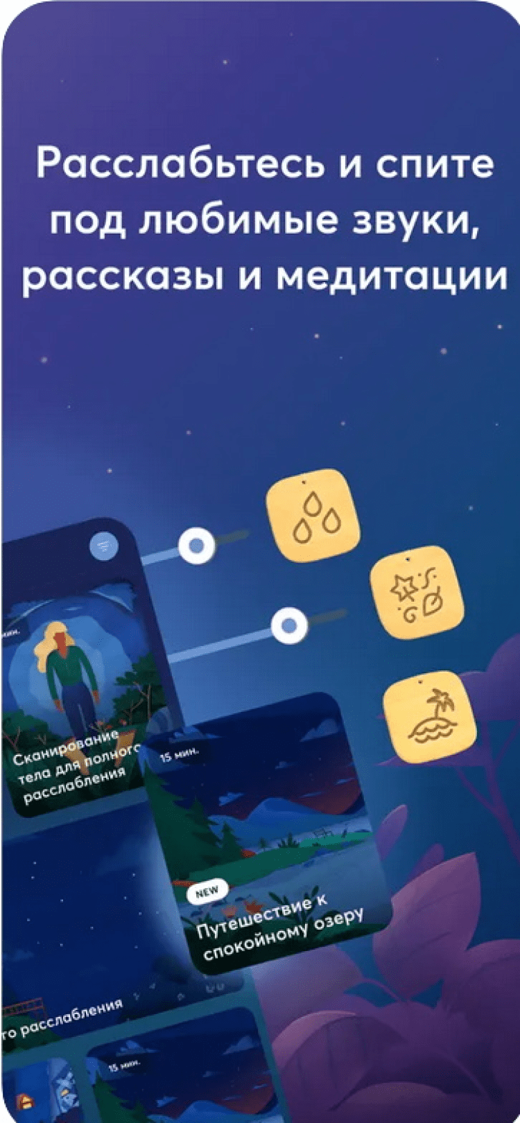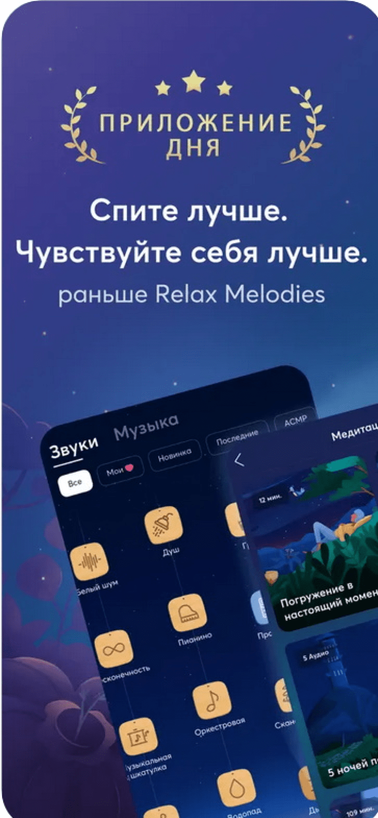Relax Melodies Приложение, которое включает в себя большой набор высококачественных звуков и мелодий на любой вкус, все из которых помогут вам справиться с бессонницей и лучше выспаться. Кроме того, программа включает в себя комплекты упражнений для улучшения сна.