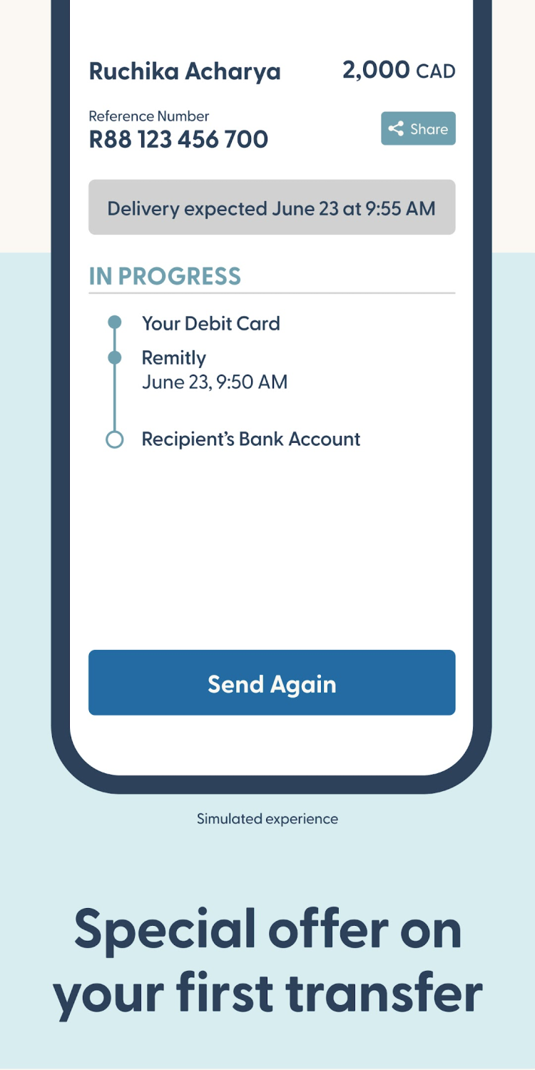 Еще одна важная функция приложения Remitly — прозрачное отслеживание. Оно помогает сохранять спокойствие, отслеживая ваш перевод, отображая каждый шаг на его пути в режиме реального времени. Кроме того, приложение уведомляет вас, когда перевод получен.