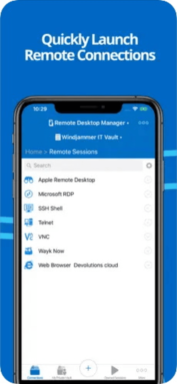 Remote Desktop Manager Бесплатный инструмент для удаленного управления ПК и рабочими станциями, включающий в себя удобный менеджер паролей. При помощи этой программы, вы сможете быстро подключиться к ПК, виртуальной машине, удаленному серверу или другой рабочей станции и без труда ввести свои учетные данные, благодаря присутствию централизованной базы данных.
