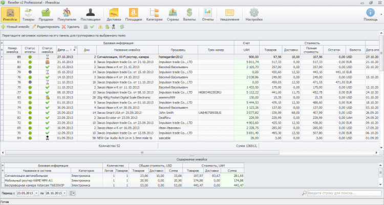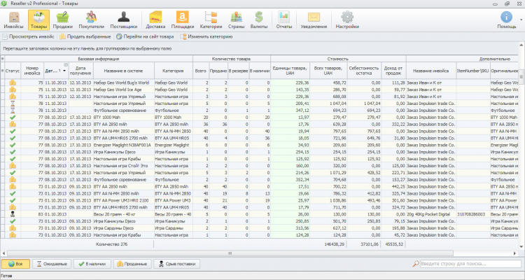 - Полный учет купленных товаров — ожидаемых, в наличии, проданных, утерянных при транспортировке;