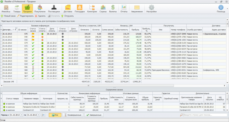 - Простой, удобный и наглядный учет проданных товаров (заказов);