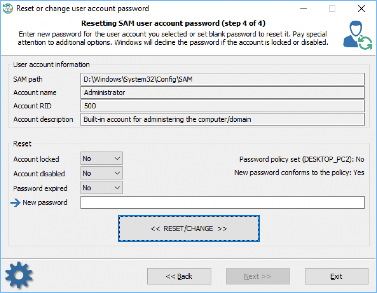 Reset Windows Password - незаменимая программа для тех, кто забыл пароль от учётной записи Windows на компьютере.