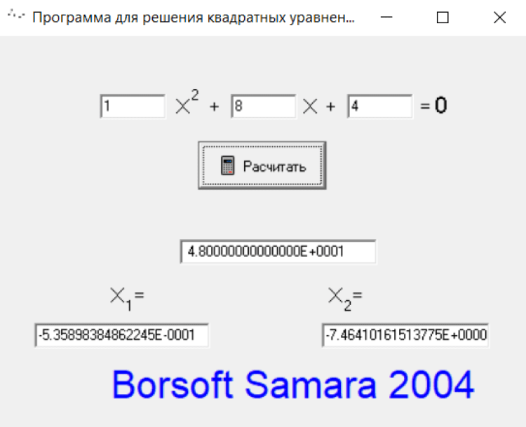 Скачивайте программу Решение Квадратных уравнений с нашего сайта goida-soft.ru. Также смотрите другие приложения в нашем каталоге.
