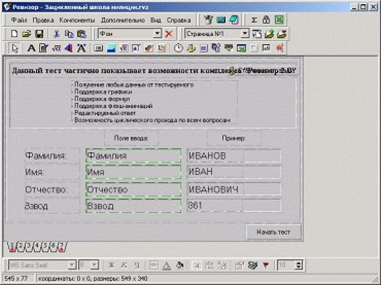 Ревизор - это мощнейший комплекс по созданию контрольно-обучающих материалов (учебников, тестов). Используется визуальная среда разработки, основанная на добавлении неограниченного количества необходимых компонентов и использовании интуитивно понятного интерфейса.