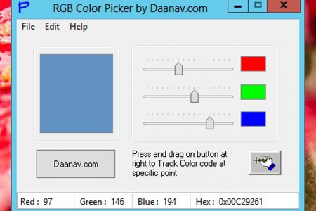 RGB Color Picker Цветовая палитра, с помощью которой можно брать образцы цвета с любой области рабочего стола. Работает с цветовой моделью RGB. Показывает цифровое значение каждого из трех цветов, а так же значение в HEX.