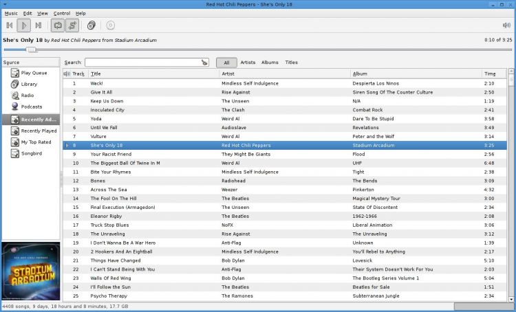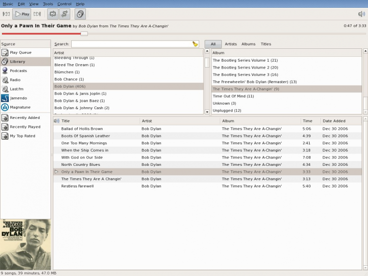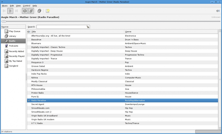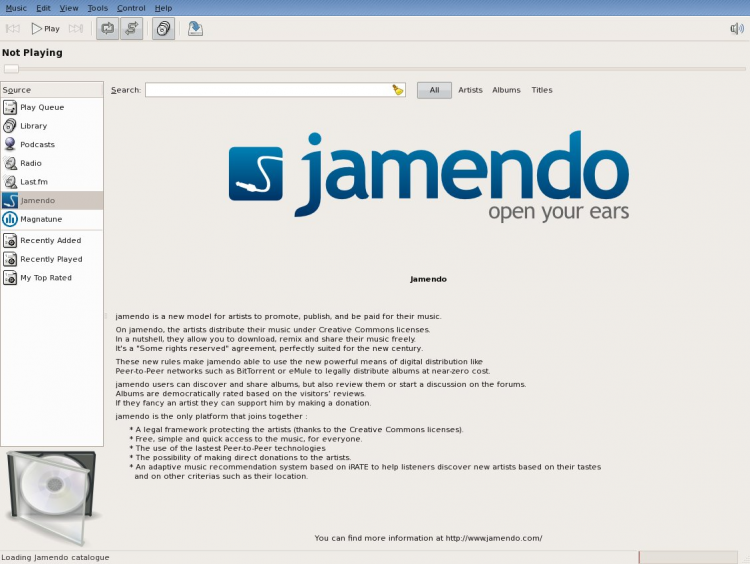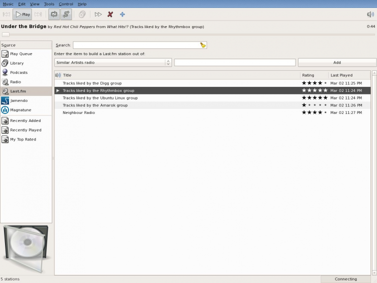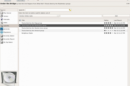 - Поддерживается воспроизведение музыки с различных цифровых носителей. Rhythmbox поддерживает потоковое интернет-радио и подкасты;