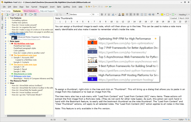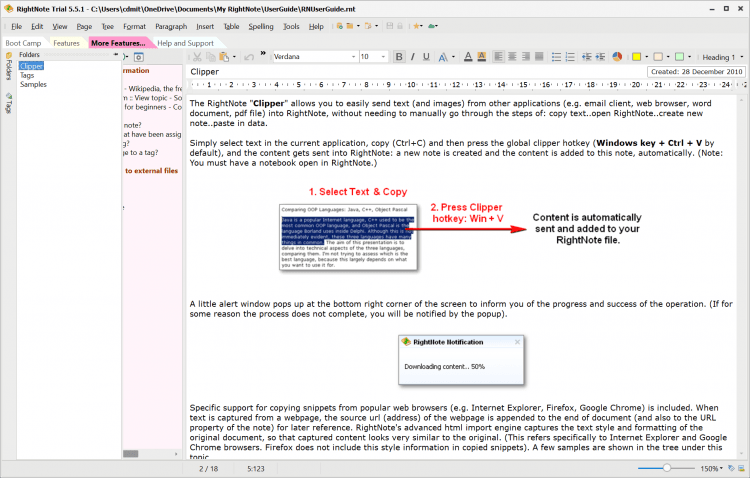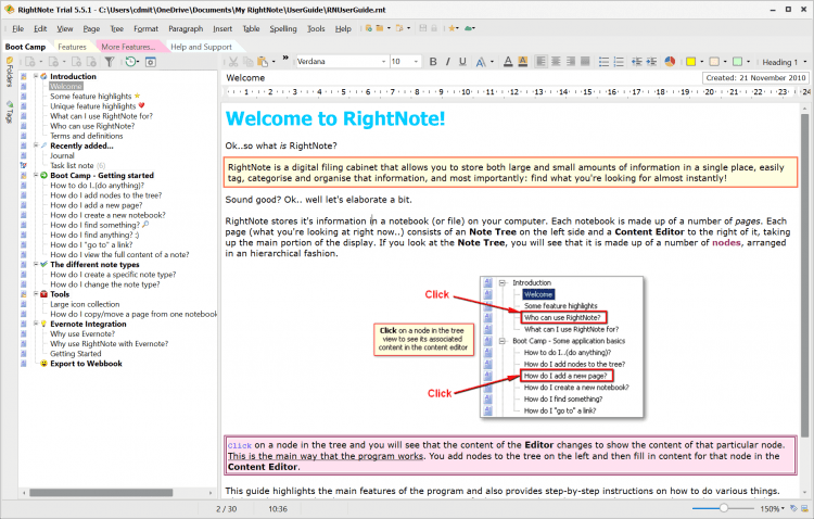 Основные возможности RightNote