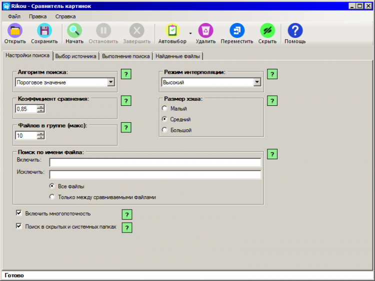 Rikou Сравнитель картинок - это программа для нахождения похожих изображений. Часто или не очень, но бывает так, что на жёстком диске скапливается множество похожих или одинаковых изображений. Дублирование файлов вещь хорошая, в качестве резерва, однако должна быть контролируемой. Программа Rikou Сравнитель картинок призвана помочь в этом нелёгком деле!