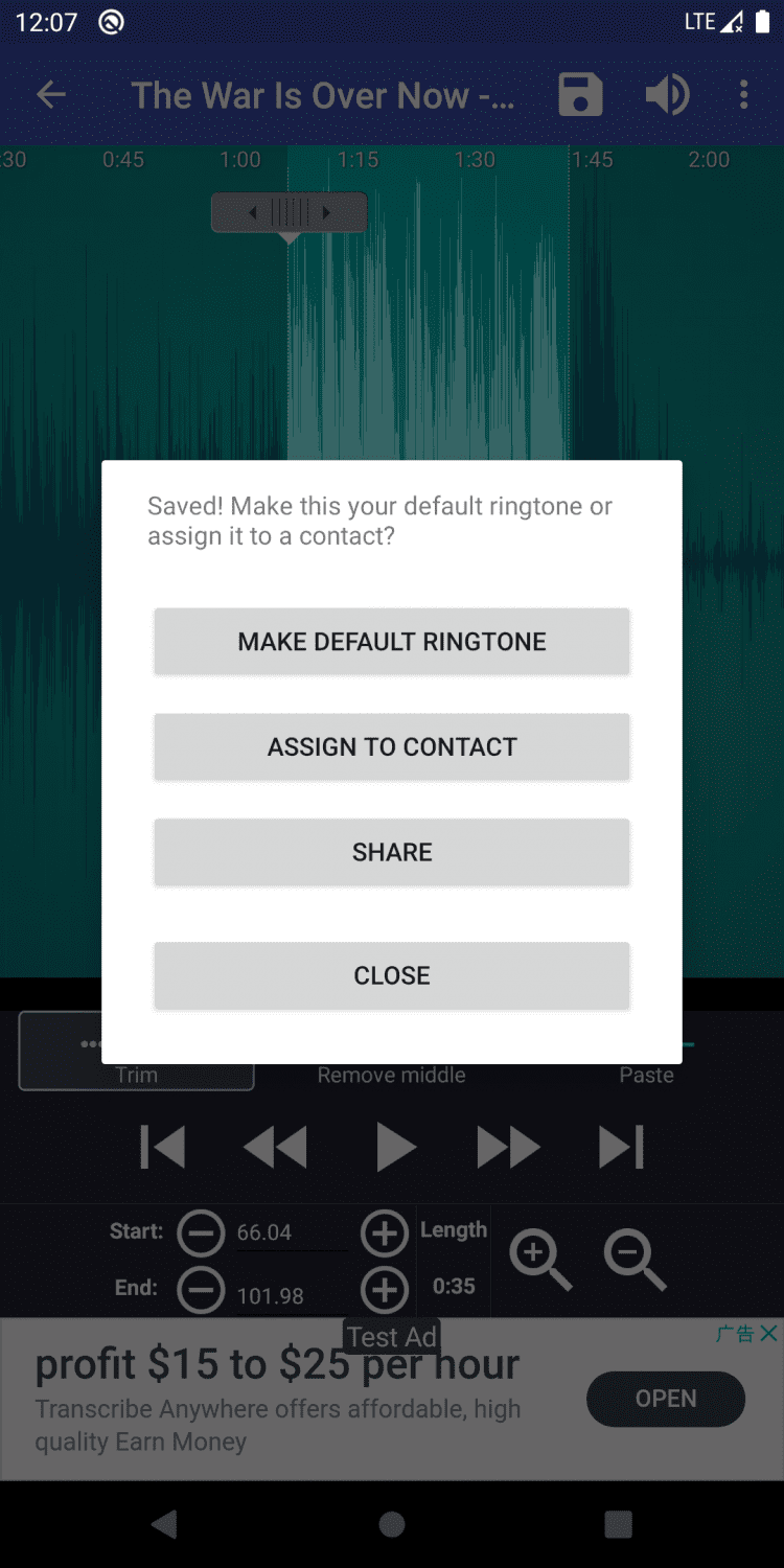 - сохранение обрезанного аудио в новый файл и пометка его как музыку, рингтон, будильник или оповещение;