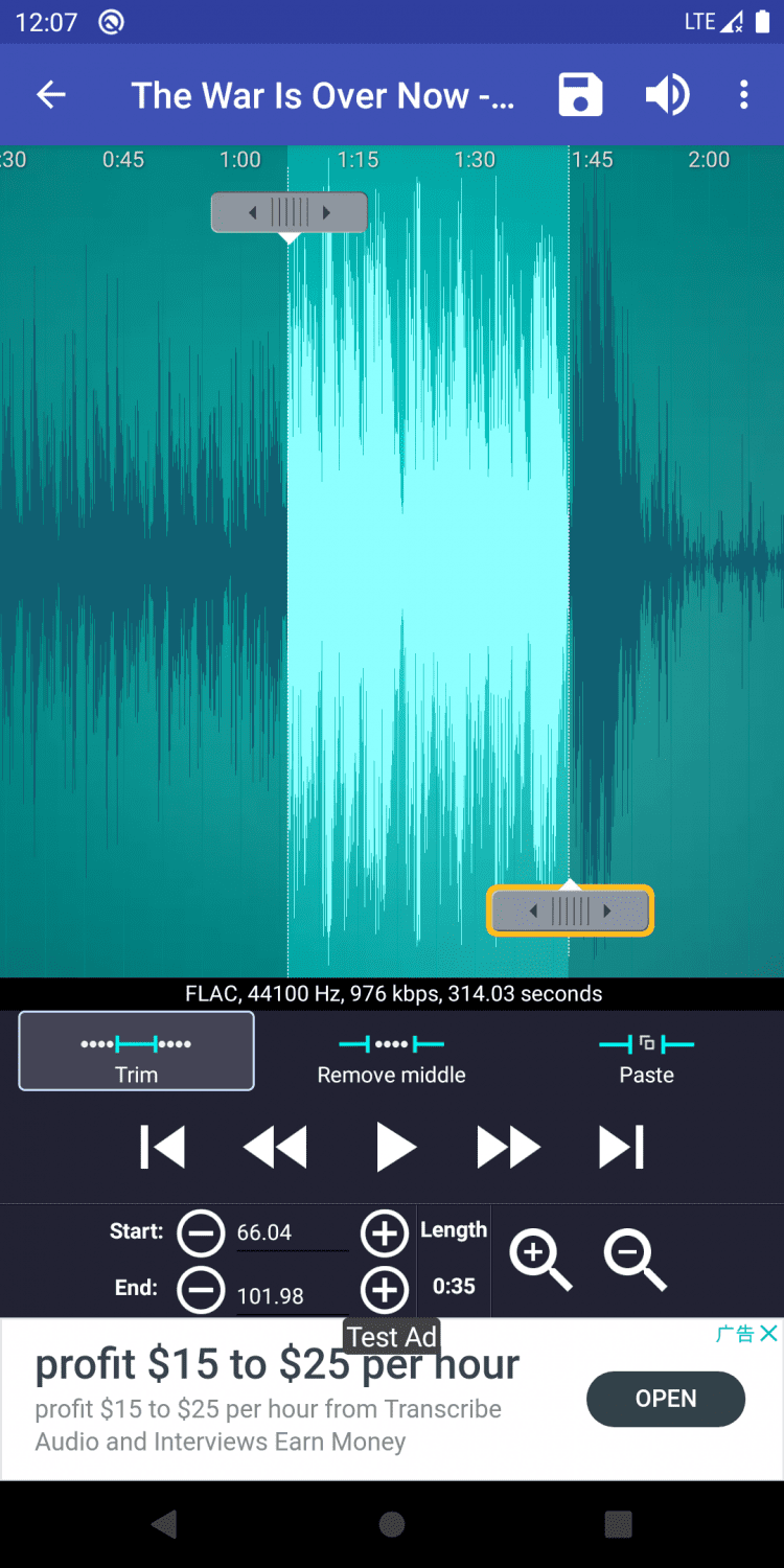 - просмотр представления звуковой волны аудио-файла в 5 режимах масштаба;