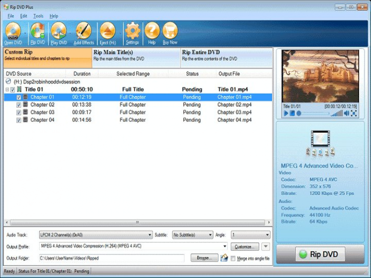 Rip DVD Plus - это утилита для создания DVD-рипов в различных популярных видео форматах.