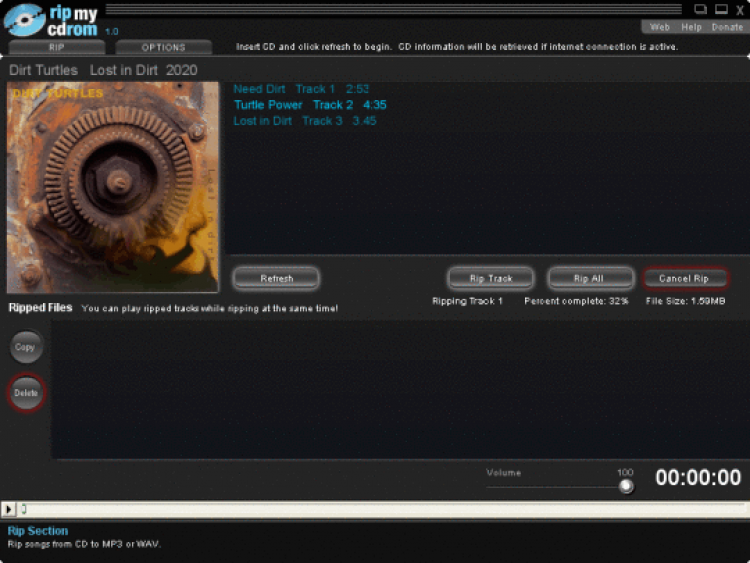Rip My Cdrom - это бесплатный риппер CD дисков для Windows. Позволяет копировать треки с музыкальных дисков и сохранять их на компьютере в формате .WAV или .MP3. Так же умеет автоматически искать обложки альбомов на Amazon и заполнять пустые теги.