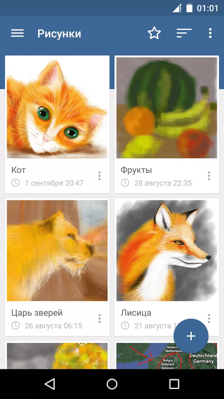- приложение дает возможность создавать рисунки с чистого листа, загружать файлы изображений и фотографии из галереи;