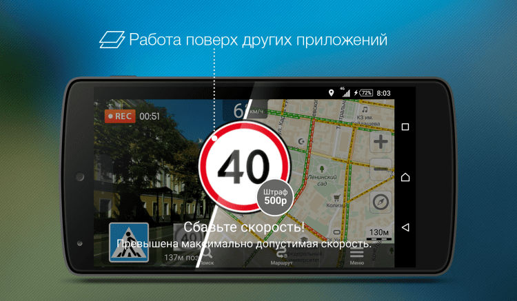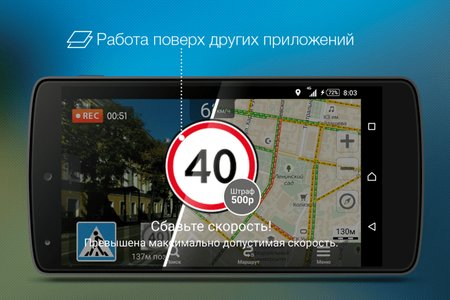 Программа Roadly может работать в фоновом режиме, как видеорегистратор, а так же выдавать предупреждения при работе с навигационными приложениями, такими как Навител, Яндекс.карты, waze, sygic и прочие.
