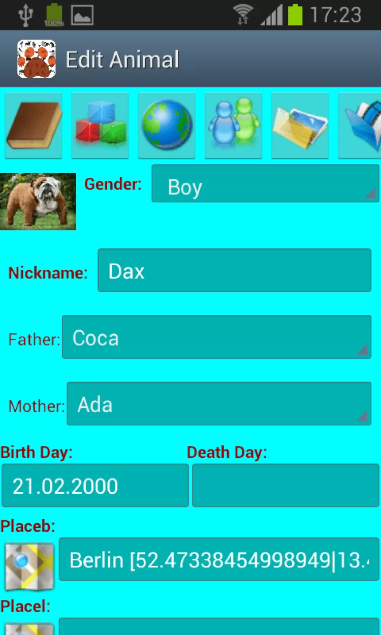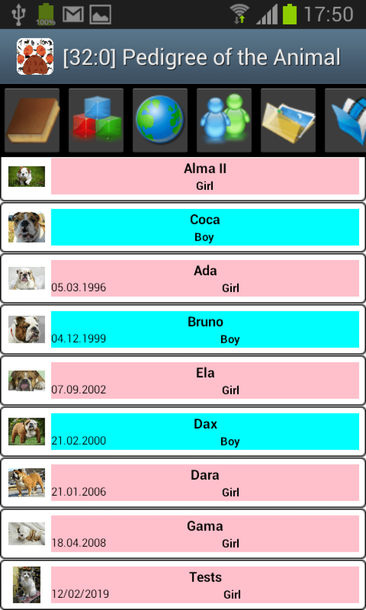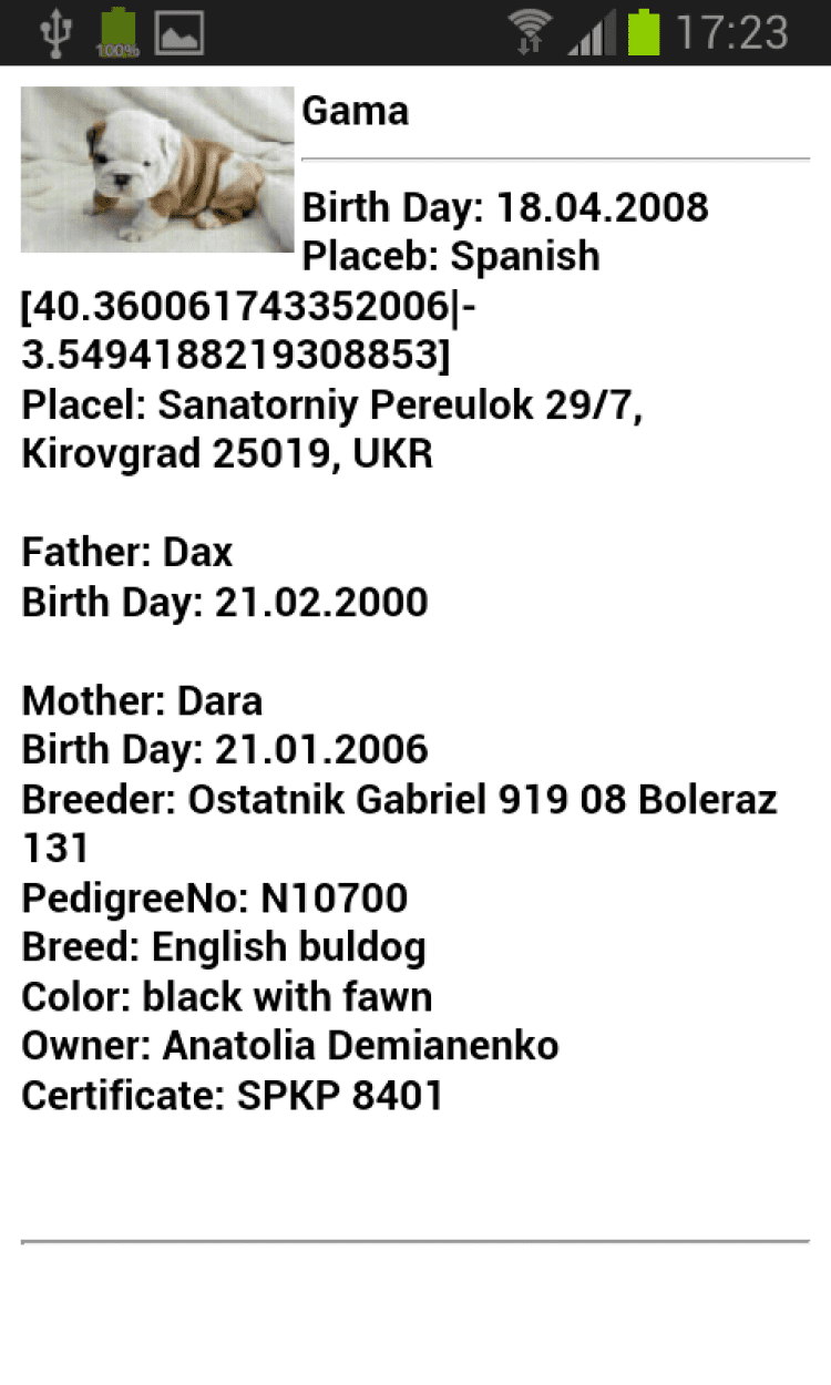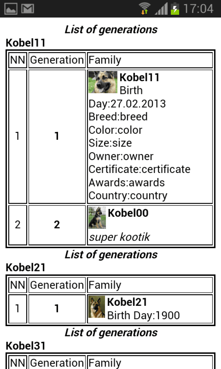 Родословная животного (Android) Программа предназначена для создания родословной животных. Ведение списка животных, их фотографии и видеофильмов.
