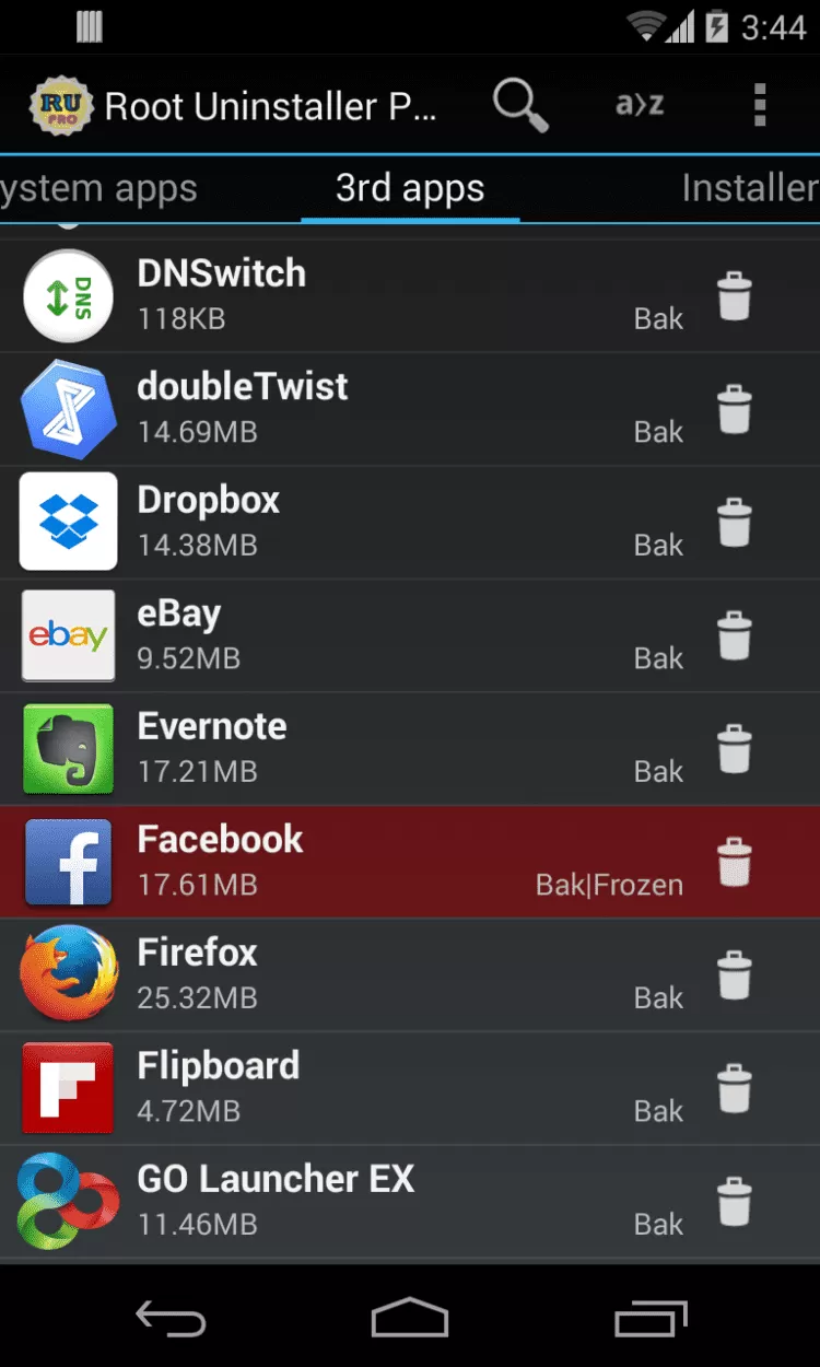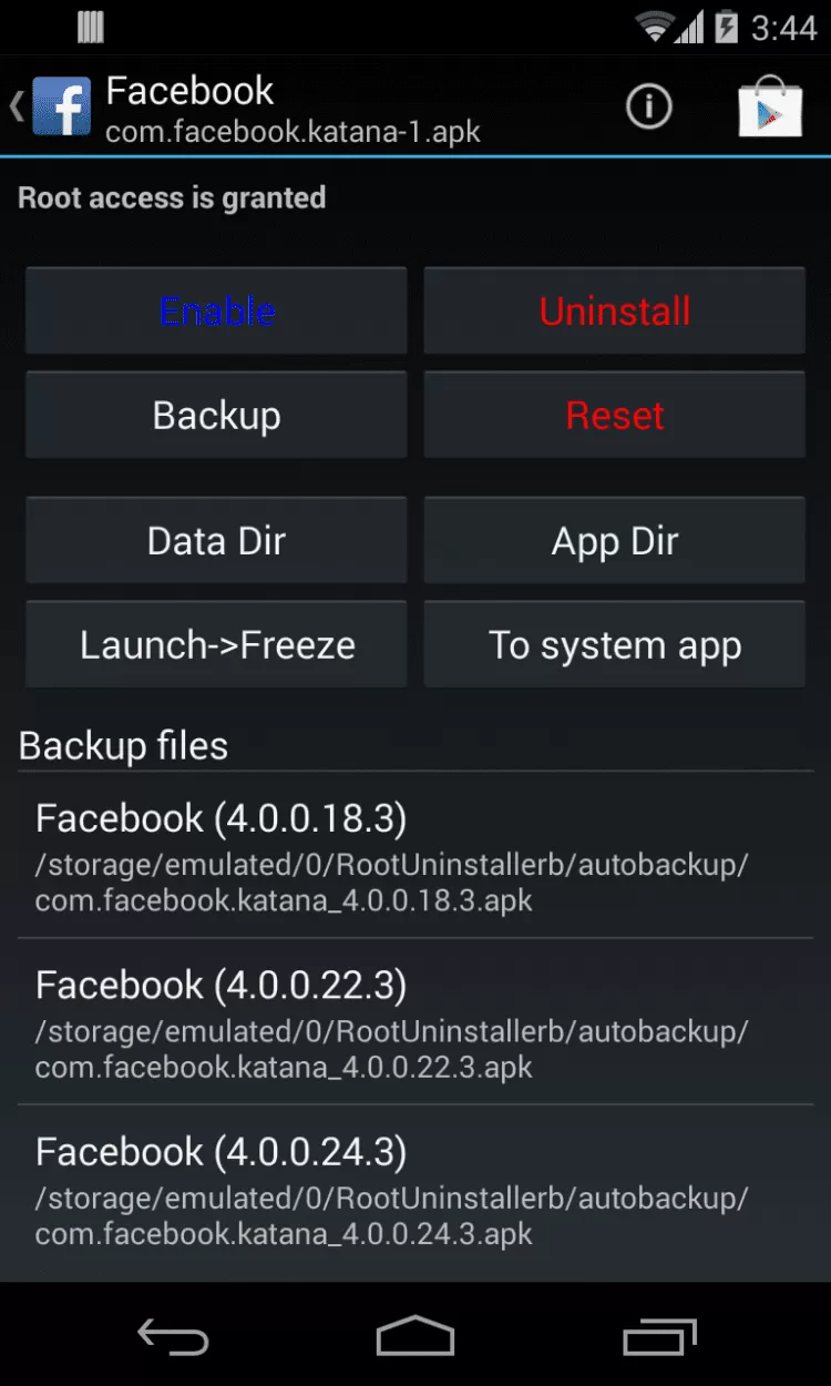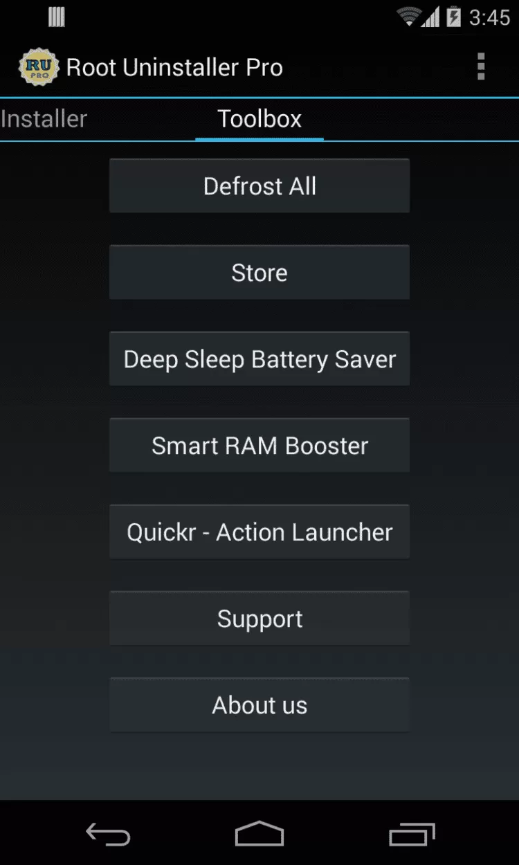 В бесплатной версии Root Uninstaller разморозка и восстановление приложений доступно только 3 раза.