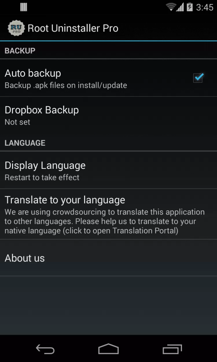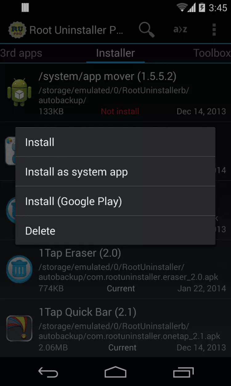 Также, Root Uninstaller позволяет создавать резервные копии приложений. Бэкапы в формате .apk будут сохранены на SD-карту вашего устройства. При необходимости, вы сможете быстро восстановить их из резервных копий или установить их на другом своем устройстве.